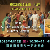 復活後第2主日礼拝 午前10時15分〜11時45分 説教はヨハネ20章19〜31節から「そこへ、イエスが来て真ん中に立った」ネヴダル・クリストファー師 イエスの弟子たちは週の初めの日の夕方、家に集まっていました。入り口 …